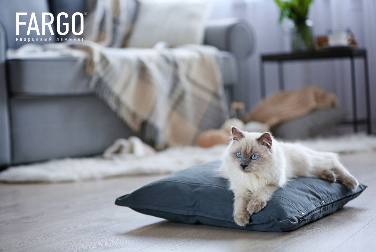 Самый основной критерий выбора – износостойкость. Вспоминаем случайные лужи, цоканье когтей, следы от грязных лап, если питомец вдруг проскочил мимо ванной комнаты после прогулки. На первый план выходит практичность. Поэтому такие напольные покрытия, как паркет, линолеум и ковролин точно не подойдут. Отличным вариантом станет кварцевый ламинат. В сравнении с другими покрытиями последний - новинка, которая уже полюбилась за высокую прочность и надёжность!